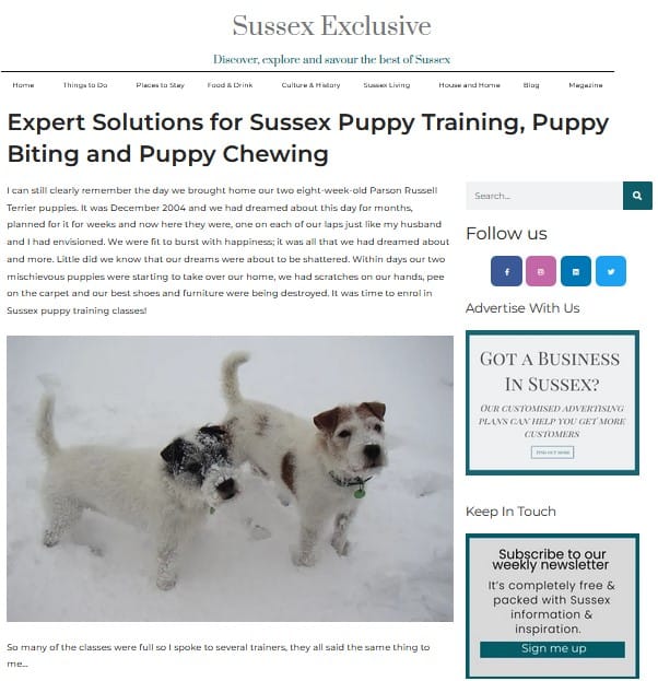 🐾 Beyond the national headlines, Sharon’s hands-on advice has been widely shared in local and regional newspapers. Covering everything from puppy chaos to serious dog behaviour issues, her tips have helped countless families across Sussex and the South East.
